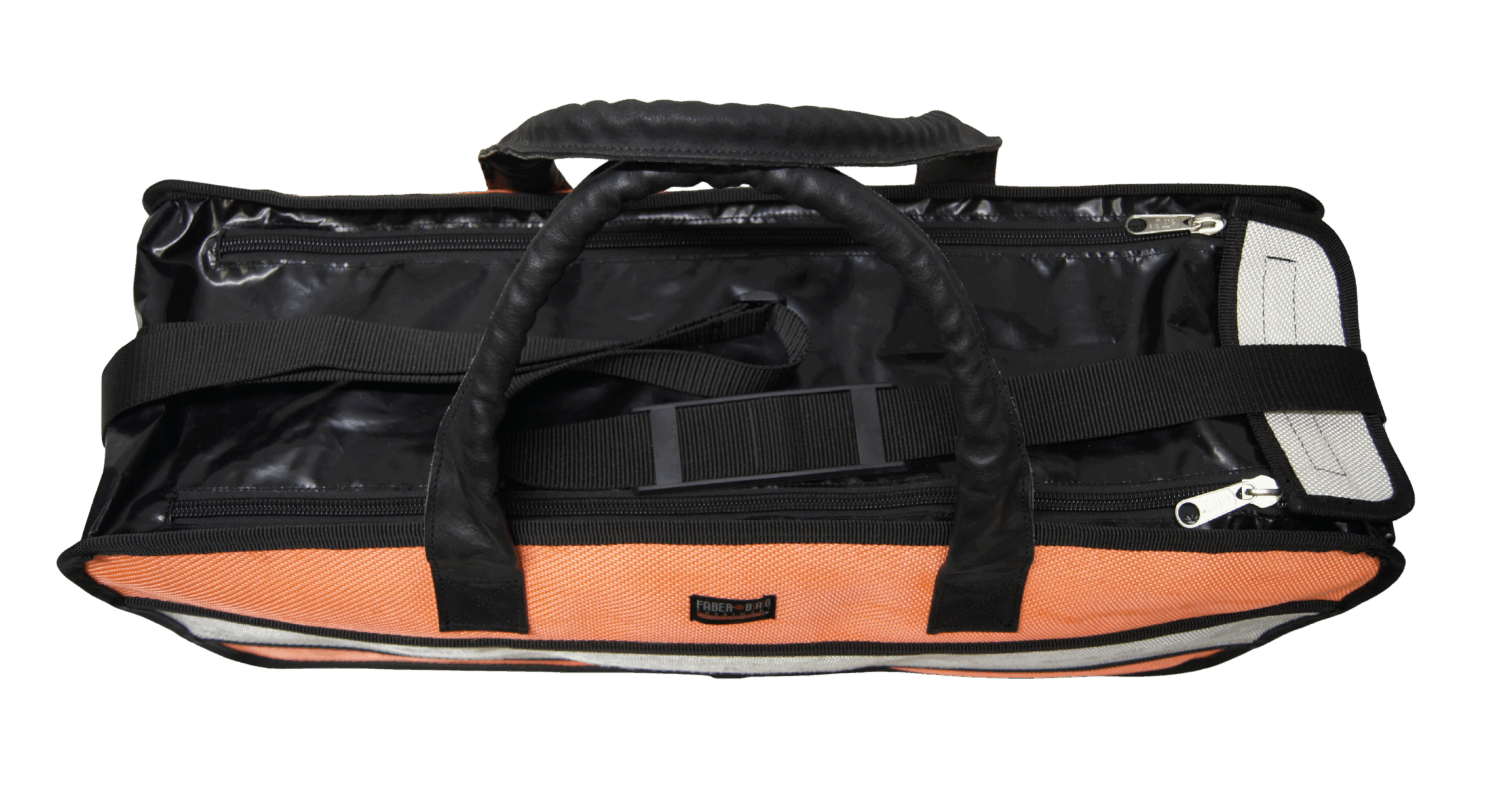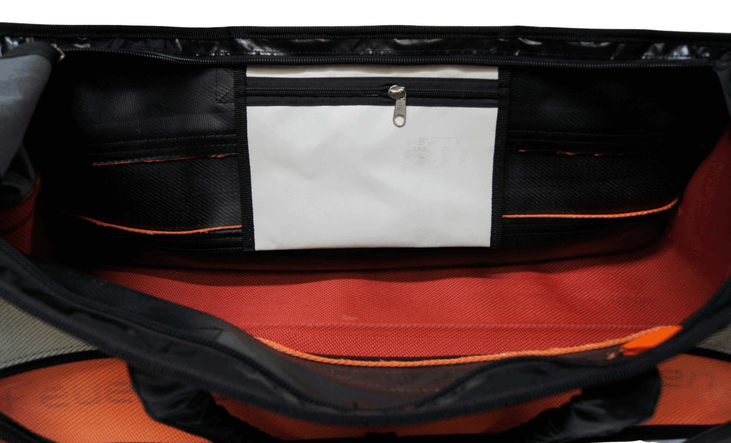 Der obere Bereich aus robuster LKW-Plane sorgt für zusätzliche Stabilität. Zwei parallel verlaufende Reißverschlüsse ermöglichen eine besonders große Öffnung – ideal für schnellen Überblick und komfortables Packen.