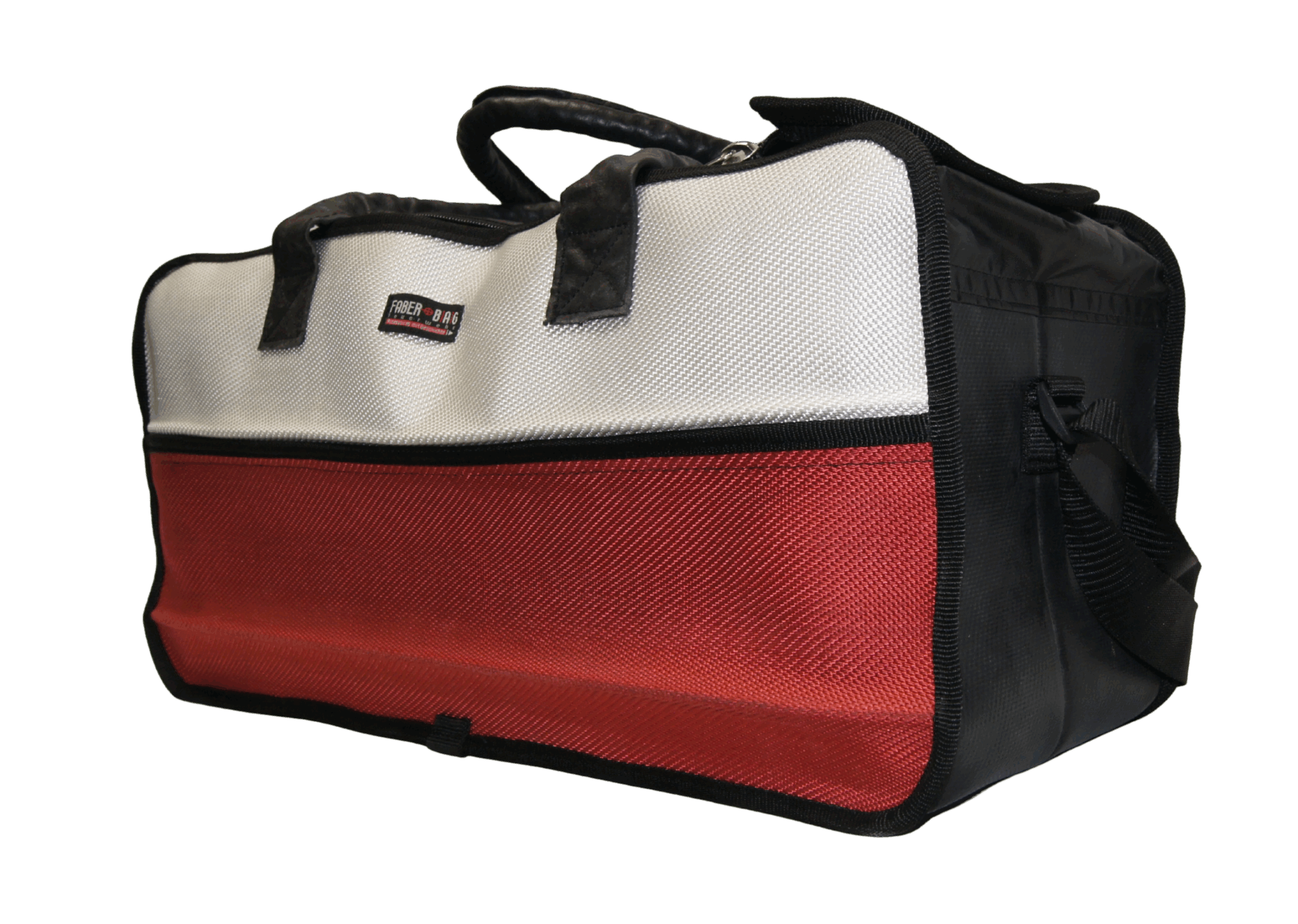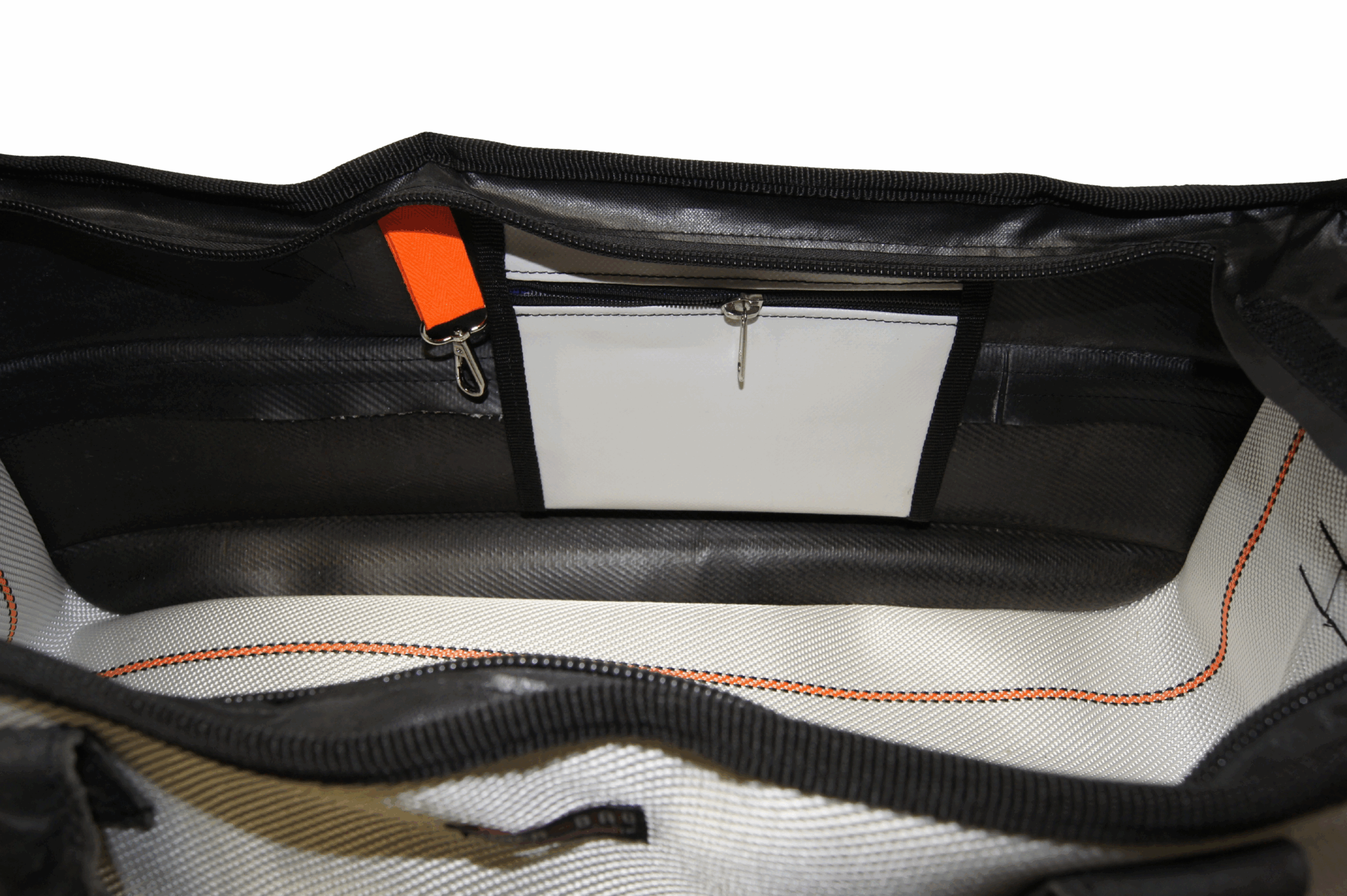 Der obere Bereich aus robuster LKW-Plane sorgt für zusätzliche Stabilität. Zwei parallel verlaufende Reißverschlüsse ermöglichen eine besonders große Öffnung – ideal für schnellen Überblick und komfortables Packen.