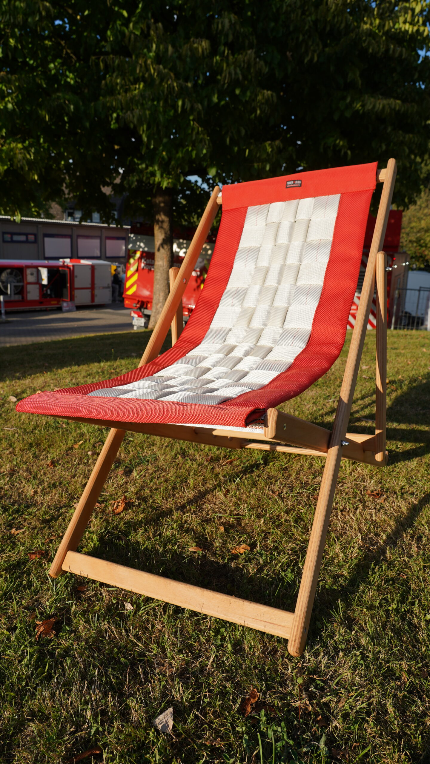Dieser Strandstuhl ein Muss für jeden Feuerwehrmann & Rettungsdienstler oder allen anderen, die in einer Hilfsorganisation arbeiten – aber auch für Menschen, die handgemachte Produkte aus recyceltem Feuerwehrschlauch mögen.